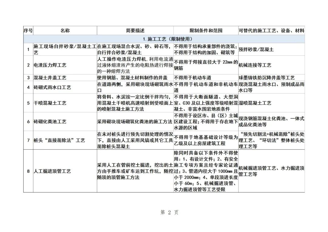 11月15日,住建部官网发布《关于《房屋市政工程禁止和限制使用技术目录(2022年版)(征求意见稿)》公开征求意见的通知》,10项技术拟被禁止使用。混凝土井盖工艺、砖砌式雨水口工艺等16项技术拟被限制使用。
